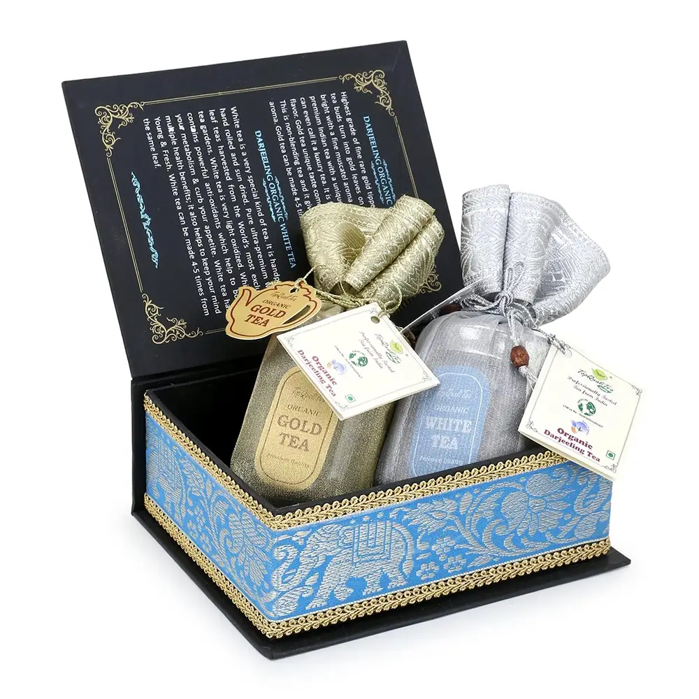 Two of the best organic Darjeeling teas to mesmerize your tongue, packed in Beautiful Luxury Crafted Decorative Gift Box with an authentic Indian touch.